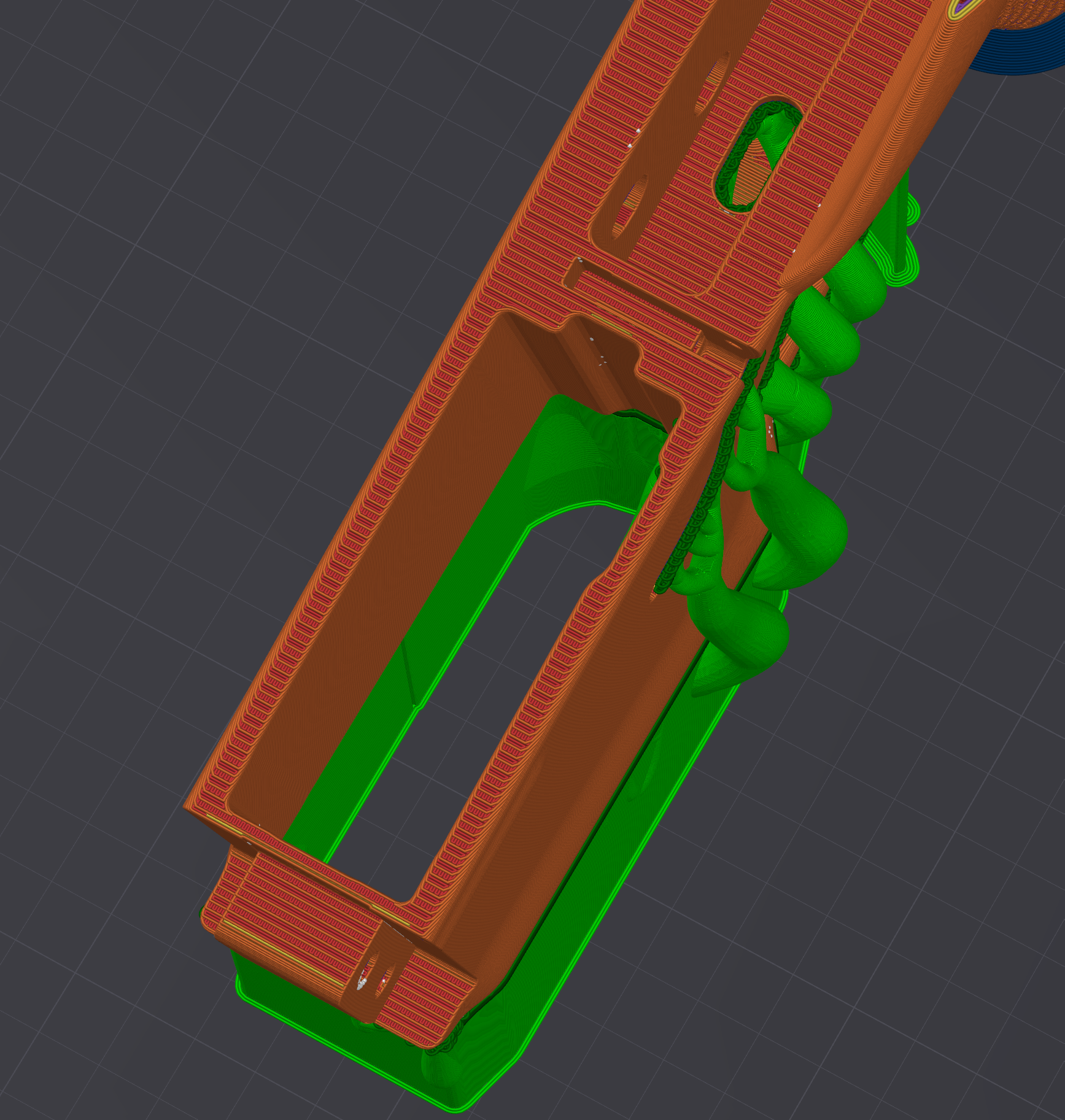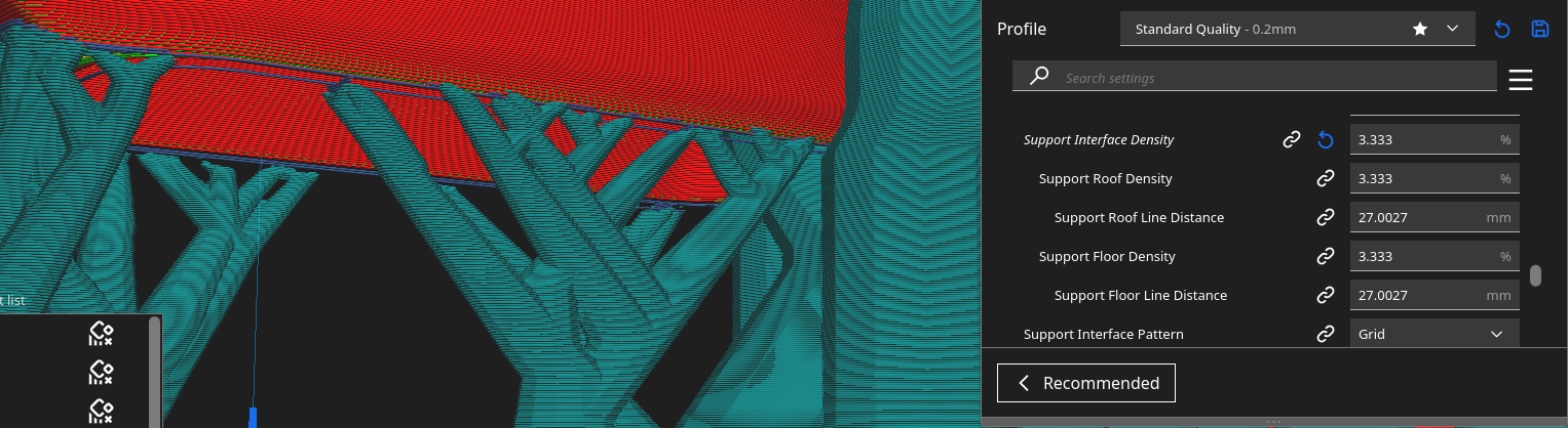 This wasn't enough to seal the deal though, I had to combine this with using 3 interface layers rather than 2 and the big kicker was to change my pattern to Rectilinear grid and then going pretty extreme on the top/bottom z interface settings. The default I think was like .24 or something (on a .2 layer height), I think the guide mentions somewhere (I saw it on the forums too) to switch to .2, but I found that making that even smaller forces the layers together better and solves the magwell adhesion issue at the cost of difficulty of removing the supports.